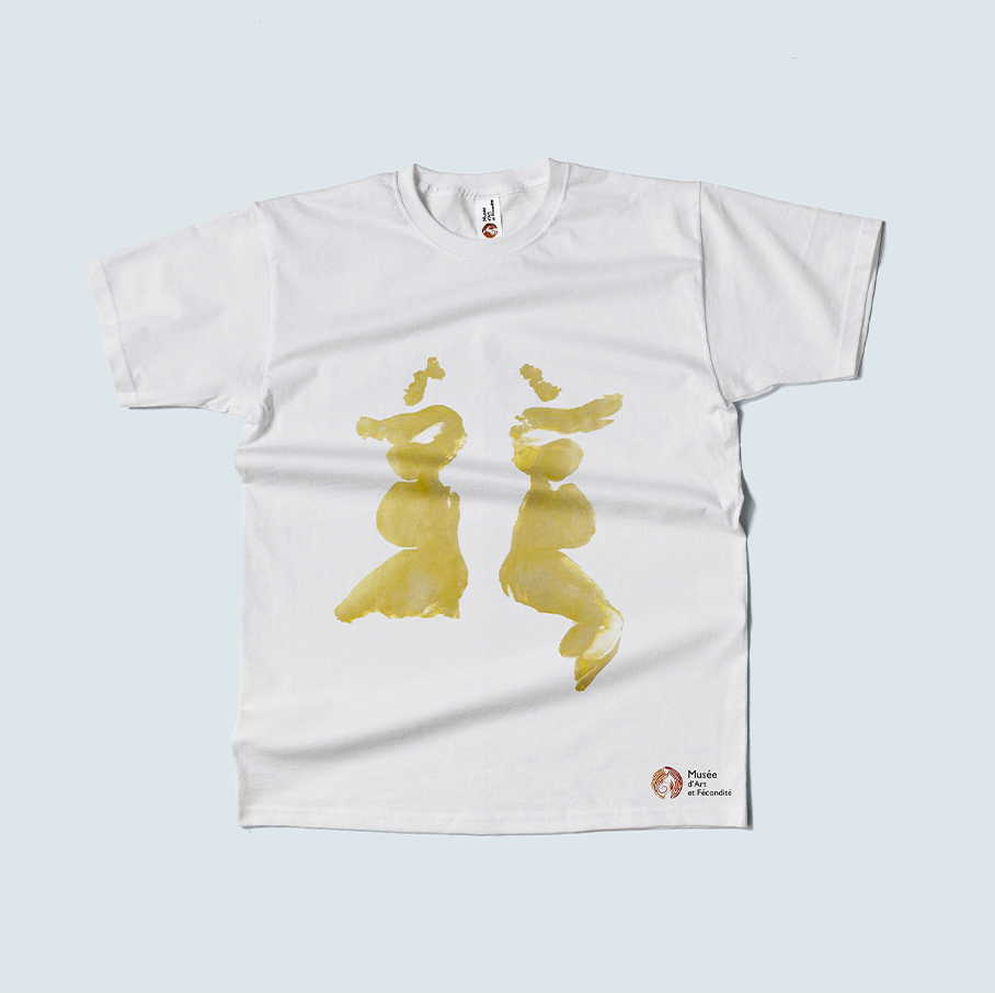 Ce t-shirt en coton biologique arbore une illustration artistique inspirée des formes maternelles et de la transmission. Entre abstraction et symbolisme, cette silhouette dorée rend hommage aux corps qui donnent la vie. Un vêtement à la fois sobre, engagé et évocateur.